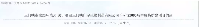 你公司報(bào)送的由河南省正德環(huán)保科技有限公司金超(職業(yè)資格證書(shū)編號(hào)0011352)編制的《三門(mén)峽廣宇生物制藥有限公司年產(chǎn)2000噸中成藥擴(kuò)建項(xiàng)目環(huán)境影響報(bào)告書(shū)(送審版)》(以下簡(jiǎn)稱《報(bào)告書(shū)》)收悉。