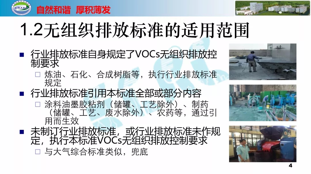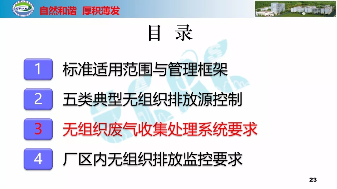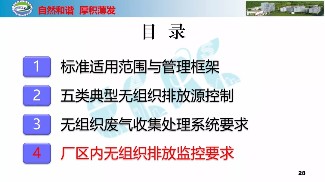 主要包括:標(biāo)準(zhǔn)適用范圍與管理框架、五類典型無(wú)組織排放源控制、無(wú)組織廢氣收集處理系統(tǒng)要求、廠區(qū)內(nèi)無(wú)組織排放監(jiān)控要求等四方面的內(nèi)容。